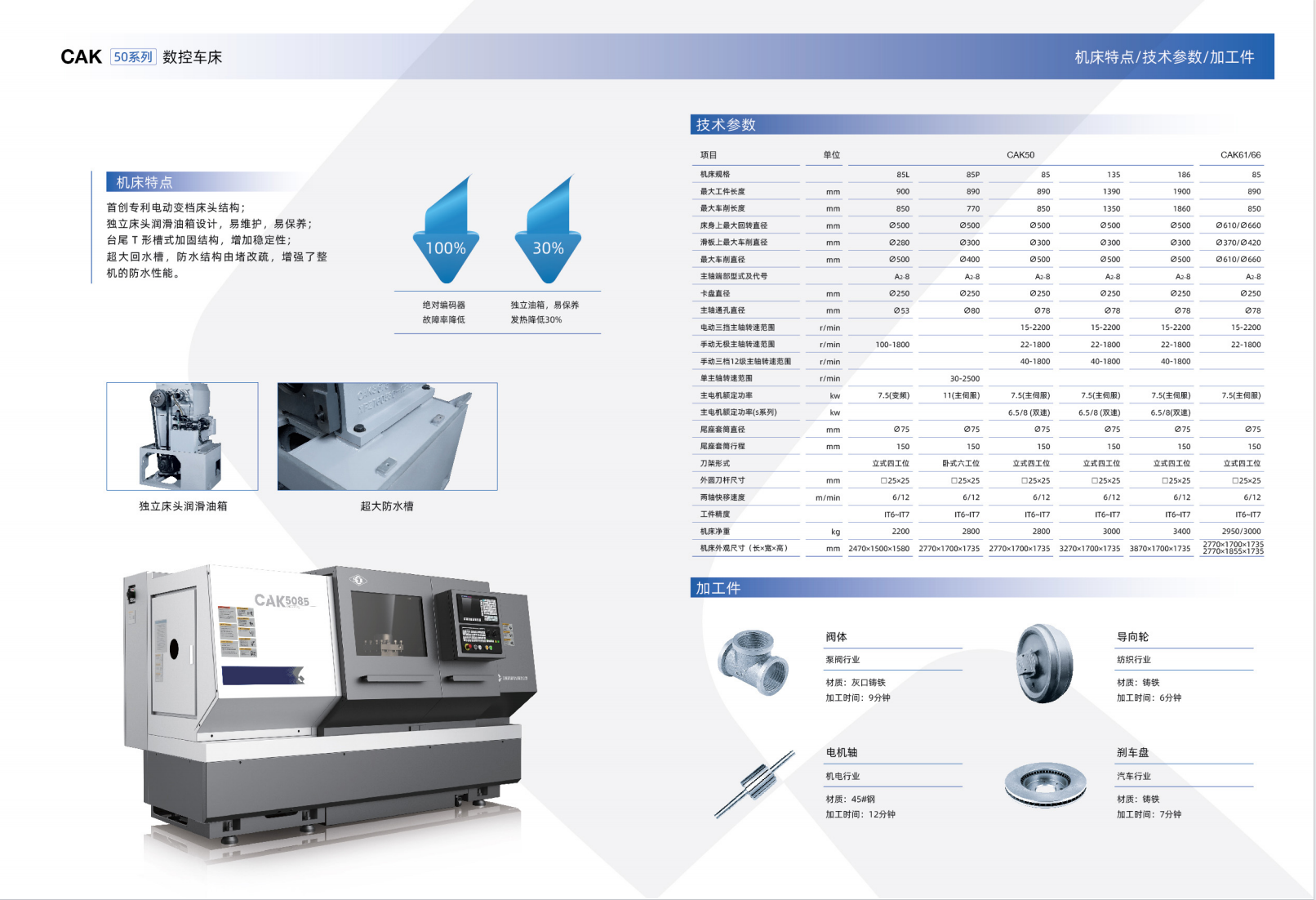 新型CAK系列數(shù)控車床繼承了傳統(tǒng)CAK產(chǎn)品的性能和結(jié)構(gòu)優(yōu)勢,在加工精度、抗振性、功能性和可靠性方面都有了顯著的提升,全新的外觀設(shè)計使機(jī)床的防水性能有了質(zhì)的飛躍。CAK系列數(shù)控車床是中國名牌的象征!通用科技集團(tuán)沈陽機(jī)床有限公司將永遠(yuǎn)陪伴您!